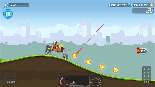 2、驾驶车辆收集沿途的金币,积累资源。