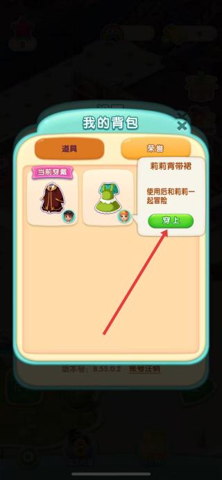 5、在弹出的提示框中点击穿上按钮,即可换成莉莉形象。