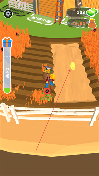 角色默认自动挥舞镰刀收割,仅需滑动屏幕控制移动方向即可,操作简单高效,即便专注升级房屋宠物,也能轻松完成作物收集任务。