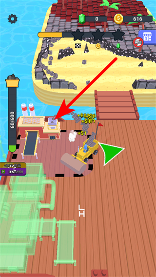 1、在游戏界面,操控挖掘机前往岛屿区域,挖掘地面获取资源。