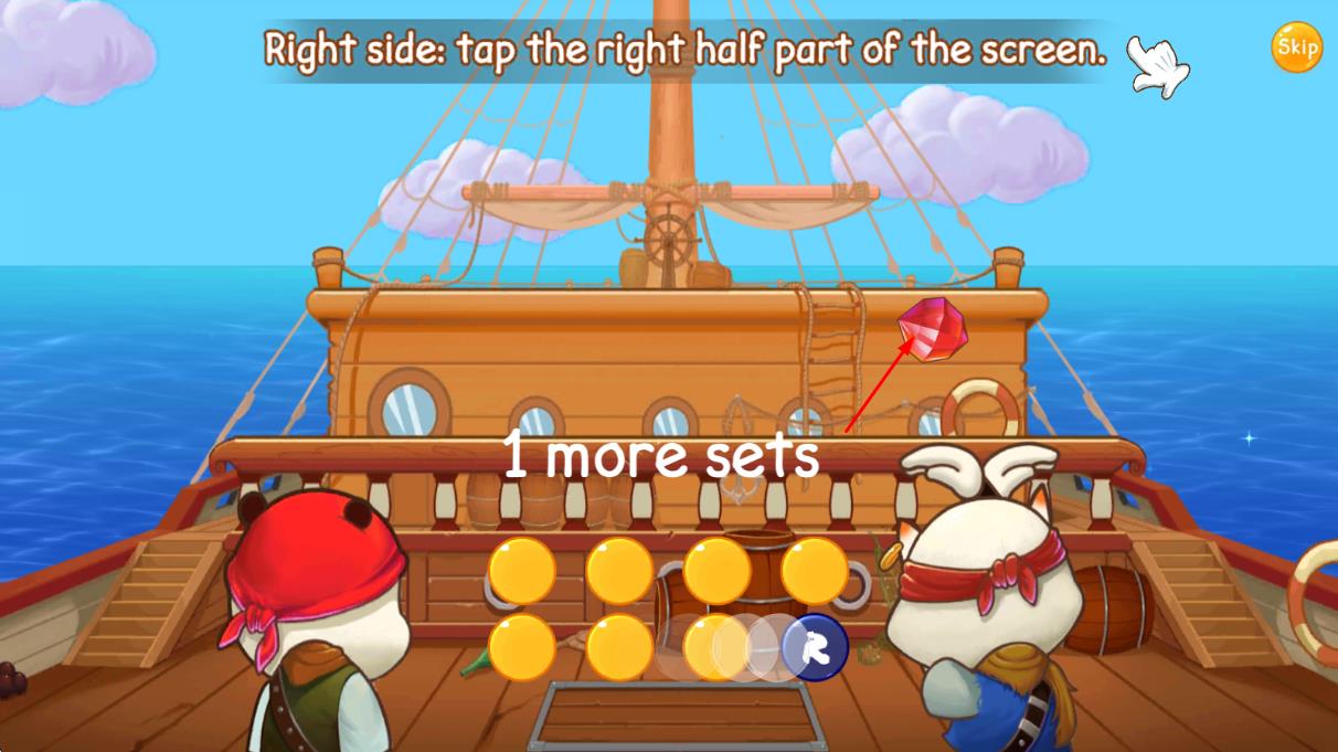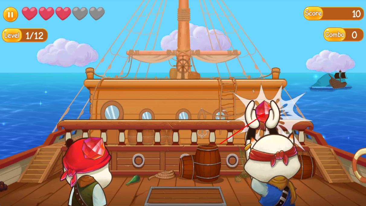 3、海盗角色成长线:通过闯关积累分数可解锁海盗的新装扮和技能,技能能在关键时刻辅助接物或调整节奏,增强角色代入感与成长乐趣。