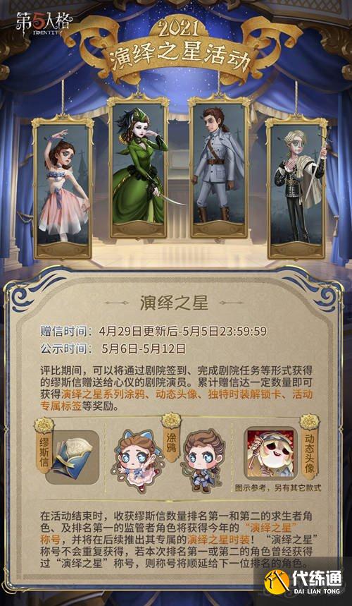 第五人格演绎之星2021奖励是什么,演绎之星奖励一览,相信很多小伙伴也是知道第五人格的最新活动演绎之星活动,2021年度备受关注的演绎之星活动即将到来,而很多小伙伴都想知道今年演绎之星到底会有什么奖励呢,小编也是仔细的整理了一下,感兴趣的小伙伴一起来看看吧。
