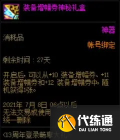 周年庆登陆第三弹奖励为一本纯净的增幅书和一个10~12增幅券随机礼盒,用助手冰某雨的话来说就是“最高可获得+12增幅券”