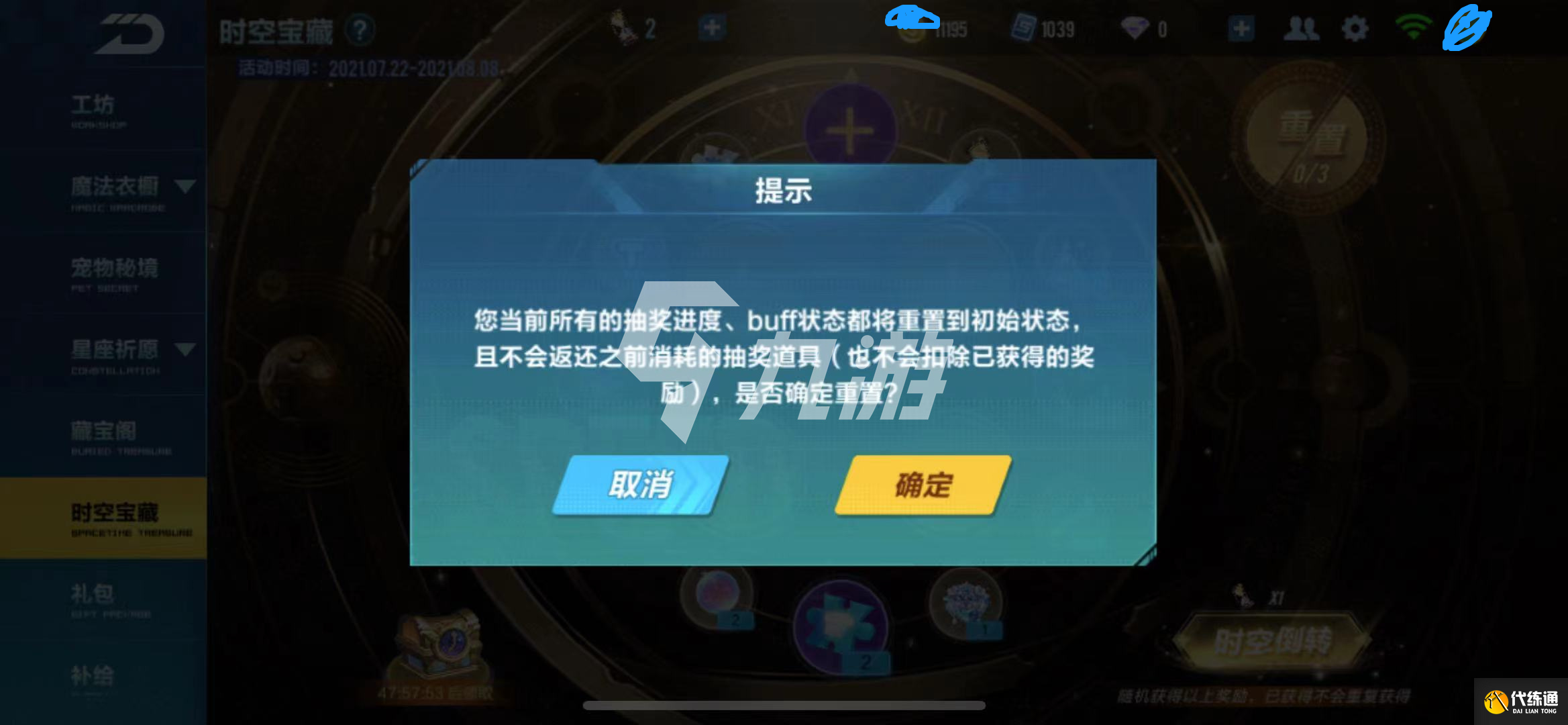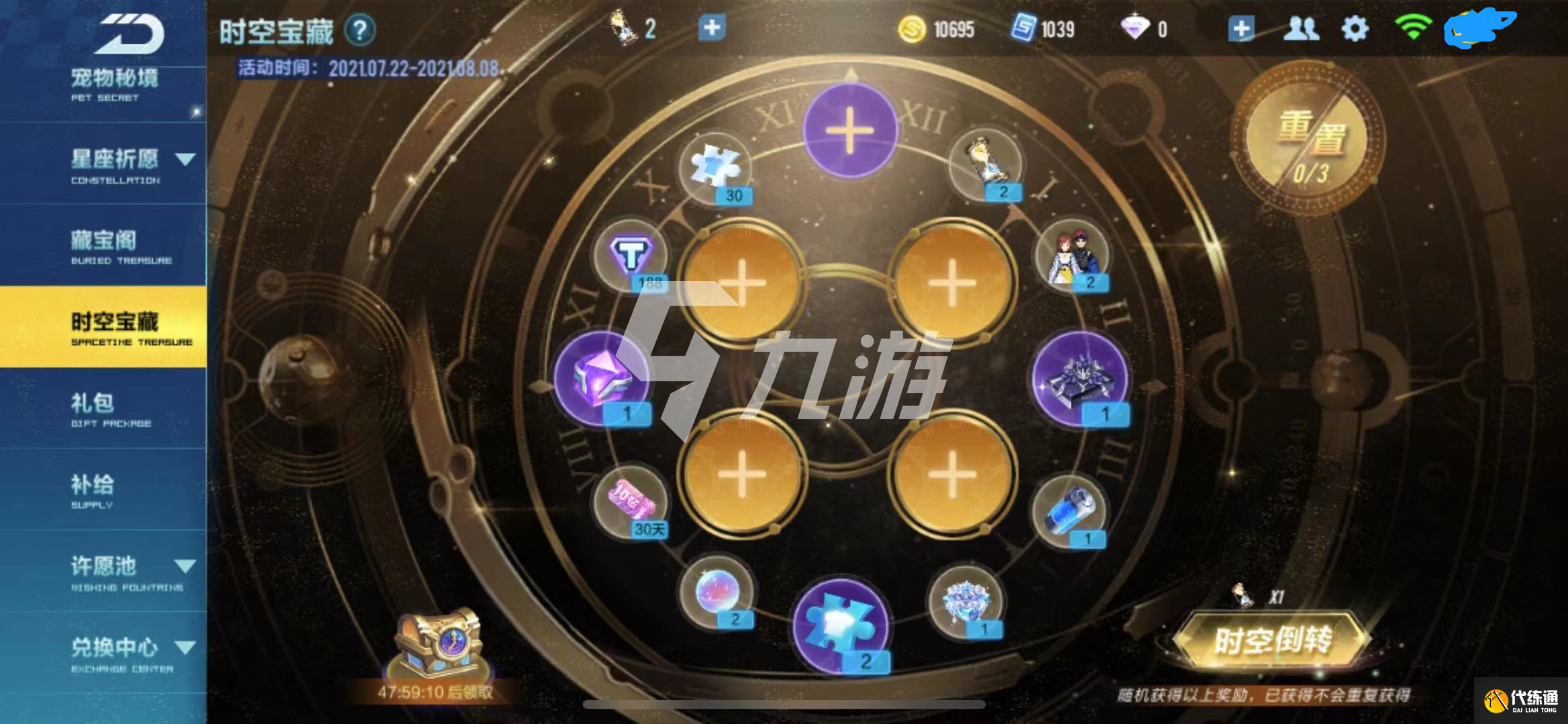 玩家们充值以后,就需要把转盘里面的四个加号选上暗耀猩红的服装配饰,选好即可转时光沙漏啦,点击时空倒转,玩家们所使用的时空沙漏就会转动,玩家们就可以随机获得以上的奖励,当玩家们,如果想重置一下也是可以的哦,点击右上角重置,玩家们的所有抽奖进度,buff状态都将重置到初始状态,而且不会返还之前消耗的抽奖道具,更不会扣除已获得的奖励,玩家们在重置的过程中一定要想好,不要做后悔的事情哦。