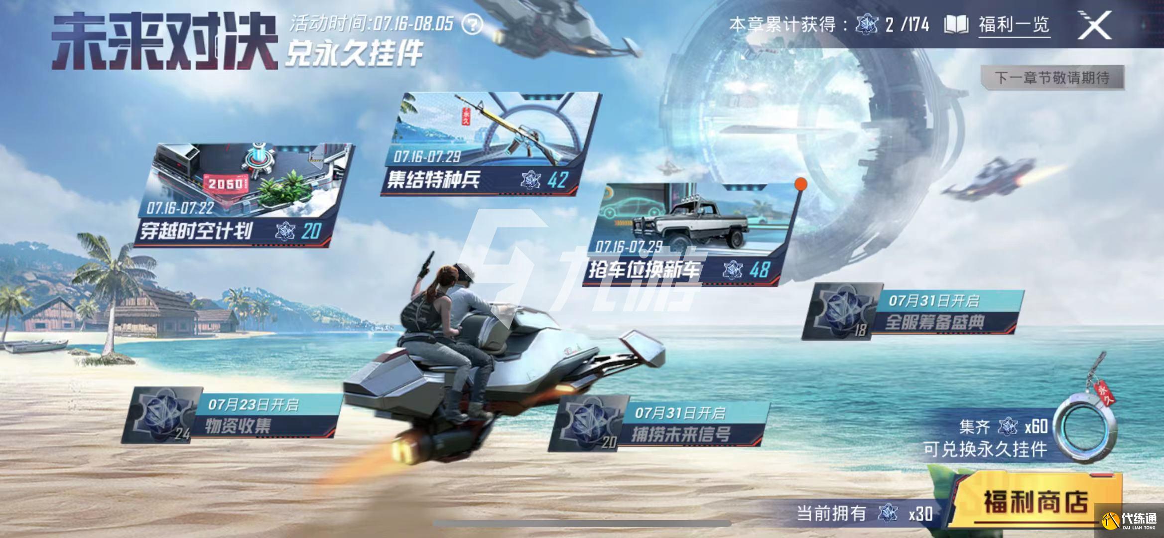 首先,还是同样的配方,同样的料,请玩家们打开和平精英进行登录,登录游戏以后请玩家选择主页面右边的精彩活动按钮点击进入,这时会出现两个列表,一个是未来对决,一个是集字抽荣耀勋章,玩家点击第一个未来对决即可。