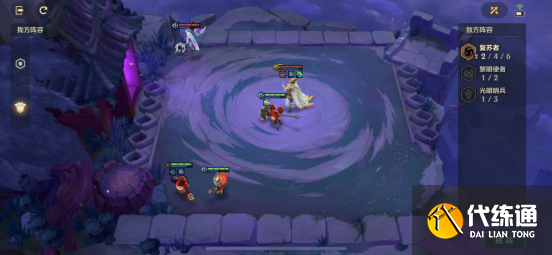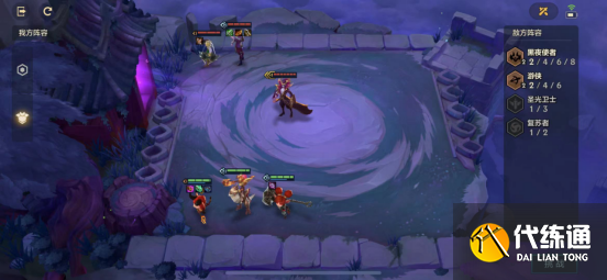 看到拥有巨额生命值的暗域巨魔我们就还是得依赖于提莫的“大魔王”羁绊进行斩杀。将提莫放在左下底角处避免直接被击杀,锤石放在左边用来控制跳到另外一边的佛耶戈。狗熊由于有“复生亡魂”站在第一排打出第一波控制,同时凯南能够衔接控制进行进一步限制敌人。