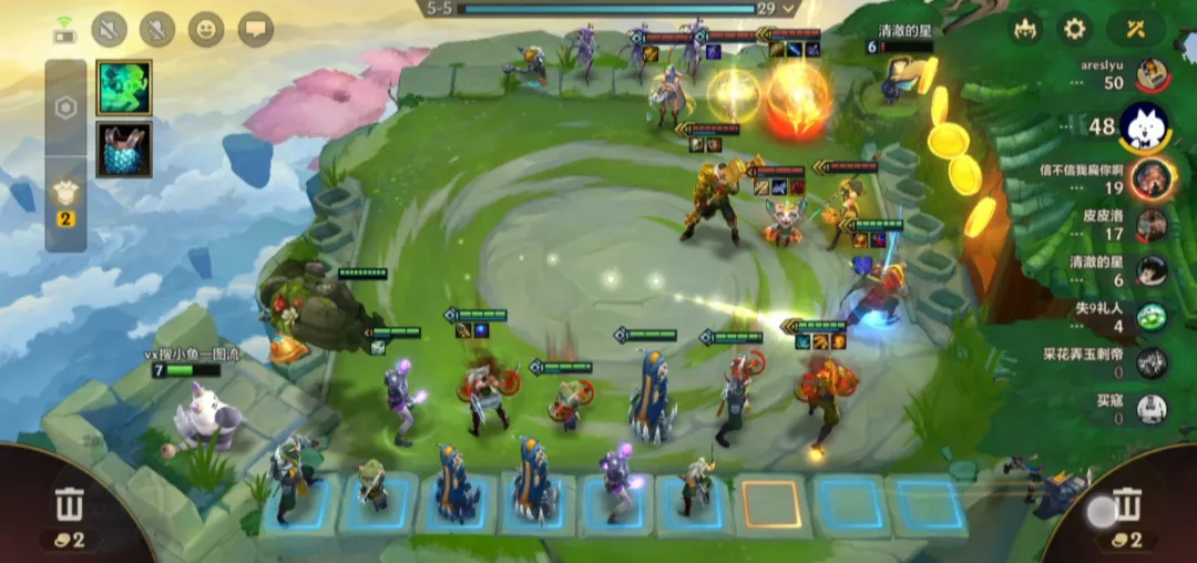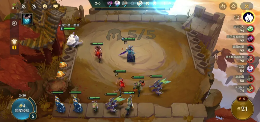 2阶段选秀结束必升5级,这样2费牌白嫖概率高,你也可以多组合出上面几个羁绊之一,5人口会少一个羁绊,我这里先放弃了骑士