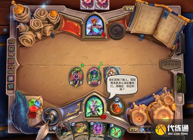 对面有狂乱、黑暗天际、连环灾难、扭曲虚空等优质解牌,还有一张把自己奶满的“发财”法术,所以随从不要全下,以防崩盘。