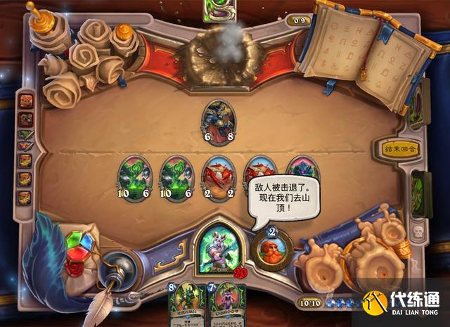 卡扎库斯前期只要没有狂乱就会被吊打。注意斩杀他之前要先把费用全用光,因为我们接下来还会打晨拥,晨拥登场直接就是他的回合。