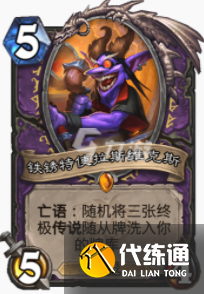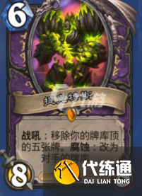 在对阵慢速卡组时,主要是通过提克特斯的撕牌来减少敌方的牌库卡数,拖到大后期通过疲劳来赢得最终游戏的胜利,邪能学说有机会可以复制提克特斯。