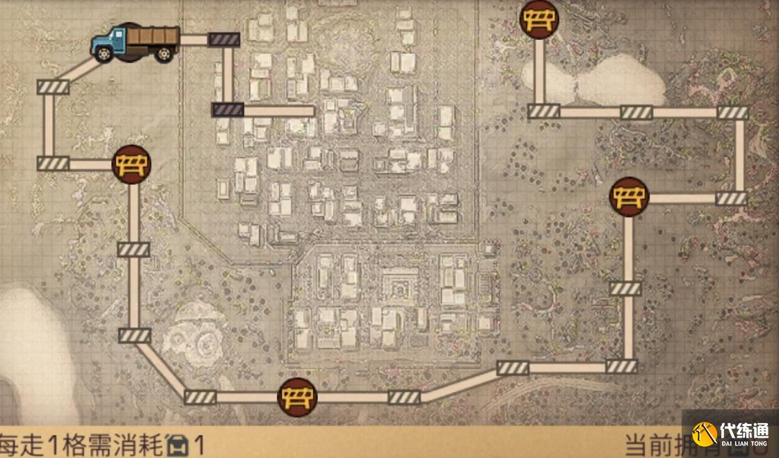 1.幸存者们在商队支援的活动主页面可以看到一张活动地图,这张地图上总共有20个封锁的关卡,幸存者每驾驶卡车突破一个关卡都可以领取对应的奖励。