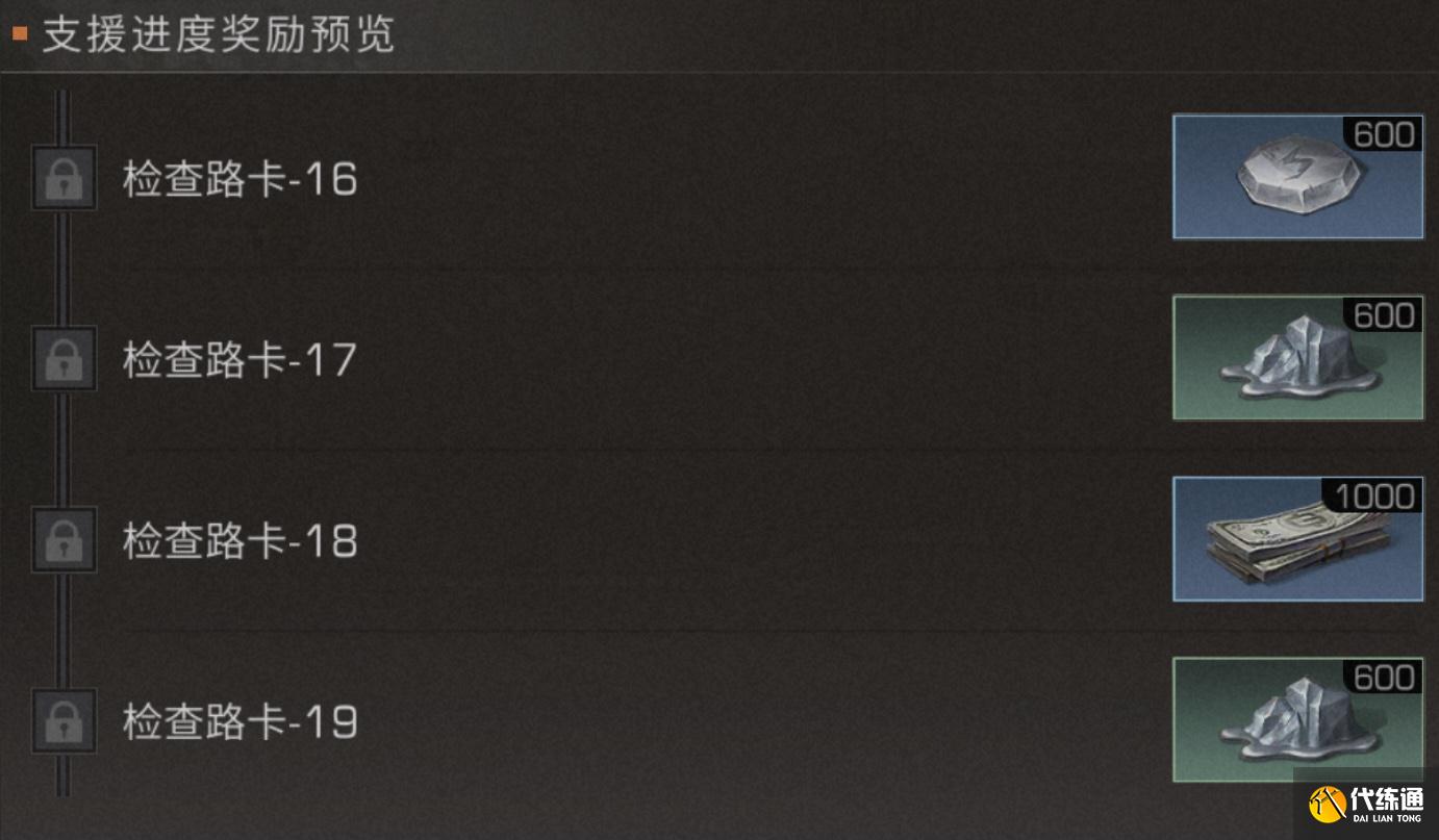 20.封锁路卡-20:可以领取集训证书*50,新币*200,技能点*2000和支援奖励礼包*1的奖励。