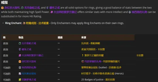 魔兽世界TBC怀旧服鸟德P2 BIS配装攻略_完美BIS配装推荐 2026-03-14 12:08:14 来自WOWHEAD的魔兽世界TBC P2阶段平衡德(鸟德) BIS装、备选装、宝石选项以及附魔选项大部分为机翻截图,有差错可文末留言交流。图片小字部分可点击后放大观看。 配装 BIS 附魔推荐 鸟德BIS配装_怀旧服TBC鸟德配装|鸟德 宝石附魔 BIS配装 P2 TBC 怀旧服 鸟德