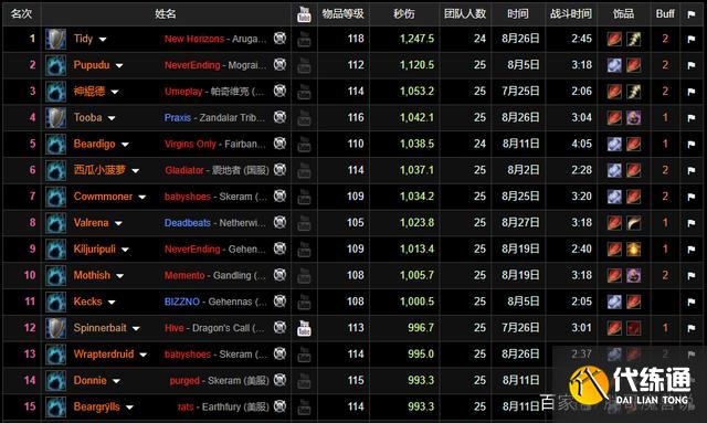 上面是WCL上格鲁尔坦克职业排名,可以看到排名靠前的坦克职业秒伤都非常高,前11名的秒伤都突破了1000点,而排名第一的防战秒伤则达到了1250点。要知道这种秒伤在野团中基本只有强力DPS职业能打出来,坦克们打出如此高的秒伤显然是非常夸张的。