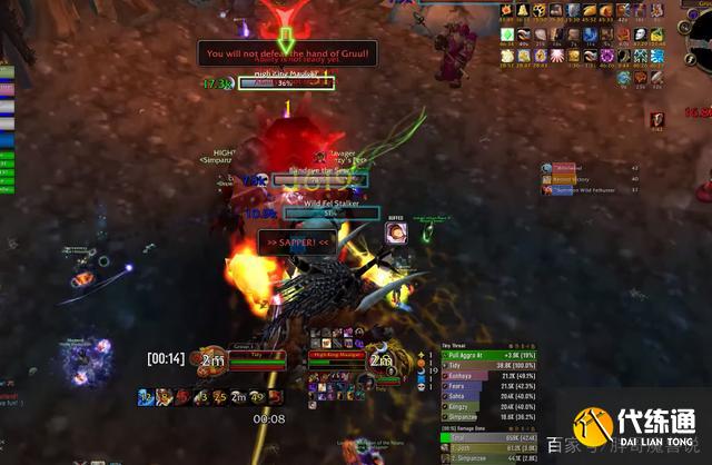 常规野团一个格鲁尔可以要打8分钟左右,而该战士的团队打格鲁尔仅仅需要2分45秒。这个团队中的DPS水平都非常高,治疗也不存在蓝耗不足的问题,打的越快,坦克的生存环境也就越好,安排个副T吃仇恨打击就可以了。