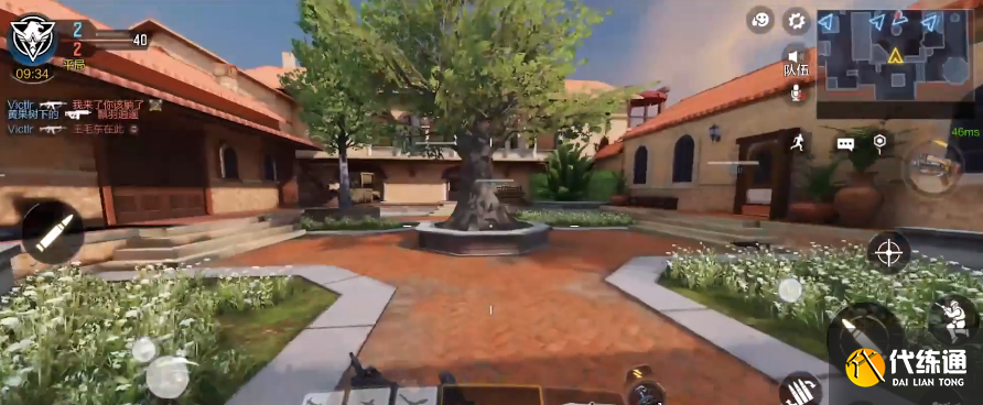 然后是复活点前方的小广场,这是一个被树木和建筑物包围的小广场,也是玩家之间交火频发的地段。我们可以看到这里的空地总共有四个出入口,很难照顾到所有的路线,且这里也是三个重要的必经之路之一,经常有人拿着机枪在这里架点,不失为一种玩法。