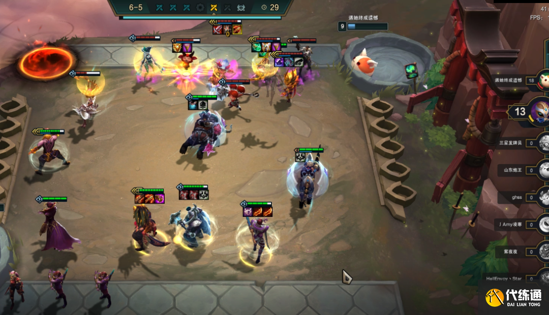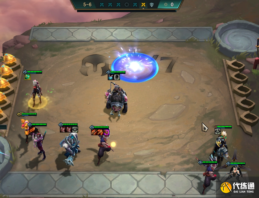 但对局有时候也看运气,下图这局就非常非常难受,外面没有玩亚索的,但是咱们亚索哥就不来,从4-5到5-6亚索就一直是6只,但比较欣慰的是阵容有2个黑夜转职,勉强稳定血量。通常在5-3亚索还没三星就会被疯狂入血。