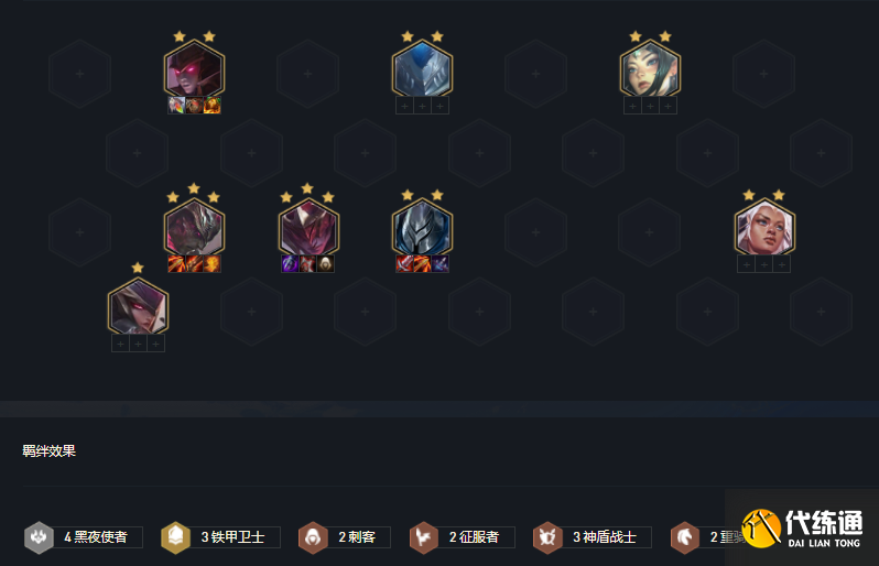 阵容关键羁绊:4黑夜+3铁甲+3神盾