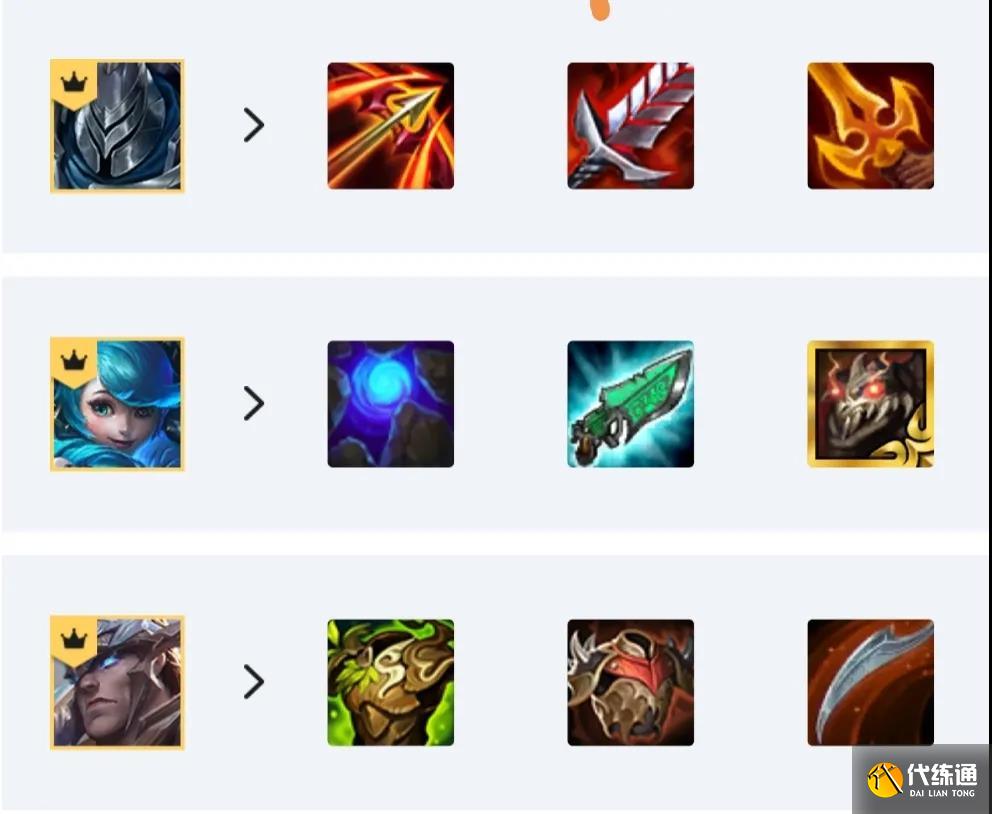 武器是阵容里面的核心物理输出点,也是前中期过渡的关键,武器的装备就是常规的分裂弓+饮血+杀人剑三件套,有输出有续航还是非常不错的。