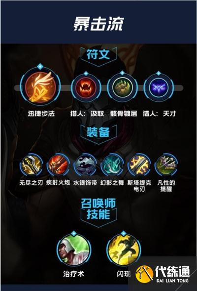 烬在后的暴击流出装伤害非常高,特别是最后一发子弹,一枪下来可以秒掉脆皮将近一半的血量。所以后的迟在团战廾启时尽量不要先用大招来浪费自己的输出时间,暴击流的普攻配合迅捷步氵去的天斌会给烬提供超高的移速,只要不是自己貼脸接技能一直躲后前排身后输出的话,烬在队友的保护下就会很难被敌方英雄针对。
