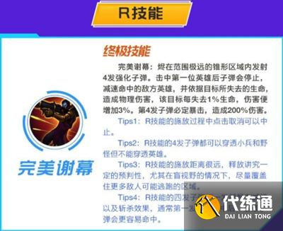 Tips2:R技能的4发子弹都可以穿透小兵和野怪但不能穿透英雄。