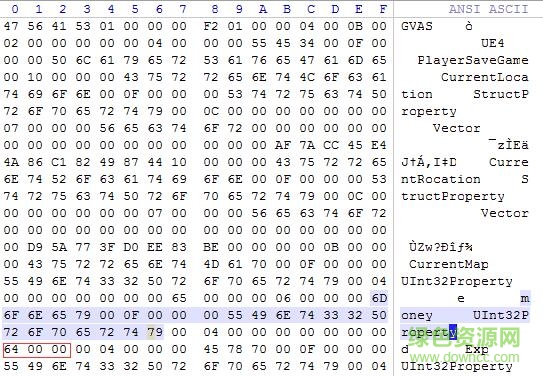 3.金钱修改,找到money Uint32Property并往后数至第十组,就是金钱值的位置,如下图红色区域,