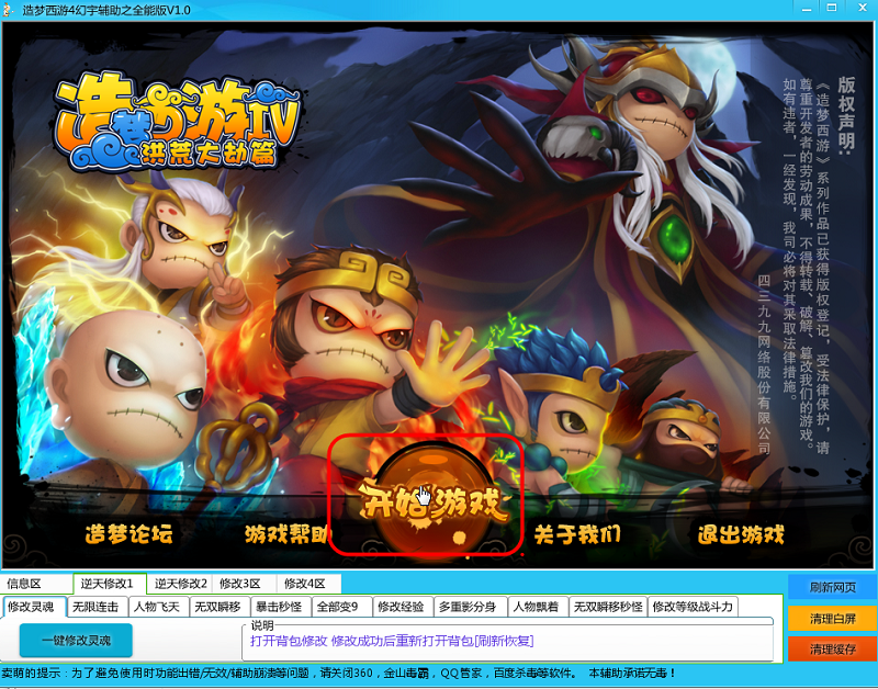 造梦西游4幻宇辅助针对造梦西游4页游进行修改制作,可以方便玩家快速完成各种任务或者修改各种技能参数,具有无限血魔、等级、战斗力、属性爆表,秒满级,一键过图、部分卡怪、价格超高出售等功能,有玩造梦西游4的玩家不要错过。
