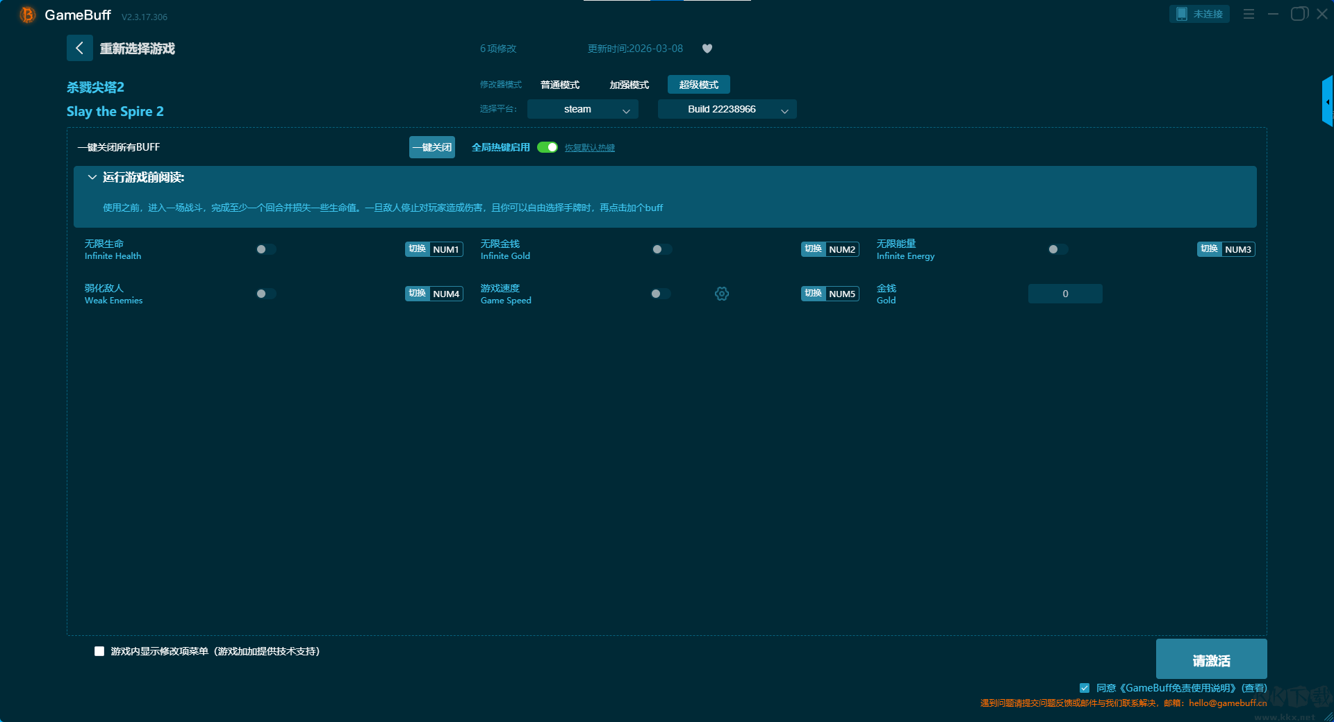 杀戮尖塔2十三项修改器pc国际版修改器超级模式(支持 6 项修改,不支持联网模式)