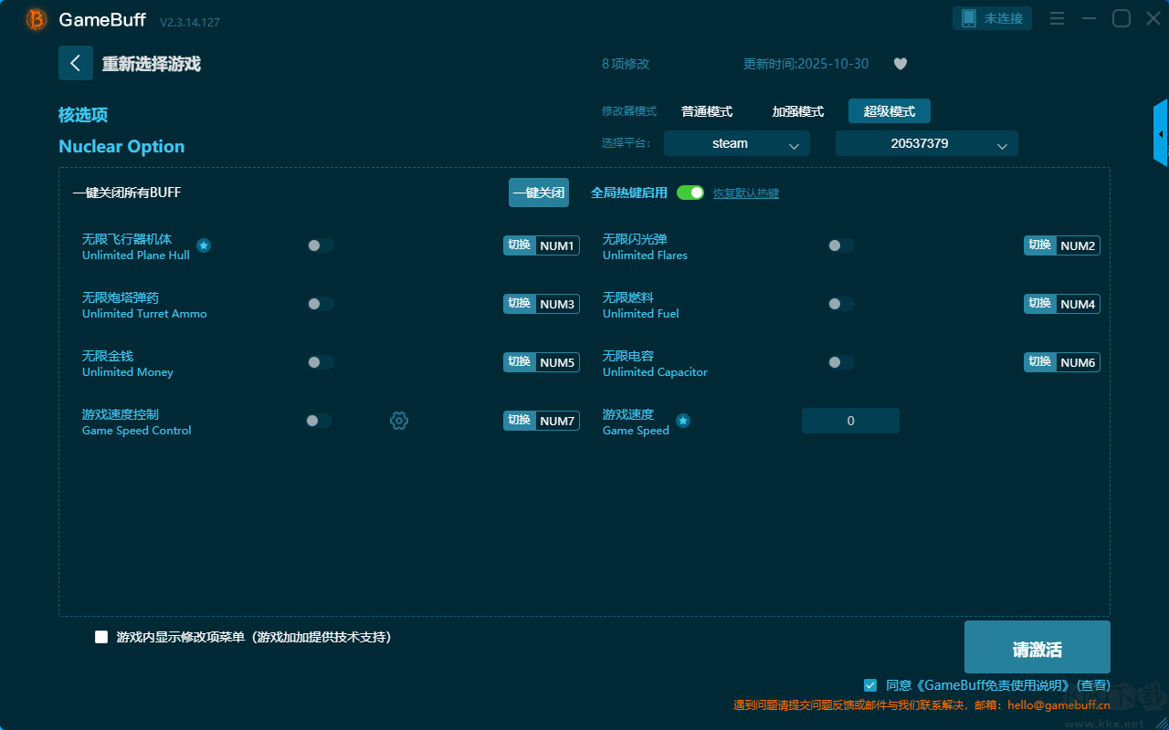 Nuclear Option四项修改器pc免费版修改器超级模式(支持 8 项修改,不支持联网模式)