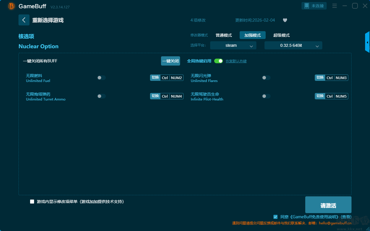 Nuclear Option四项修改器pc免费版修改器普通模式(支持 4 项修改,不支持联网模式)