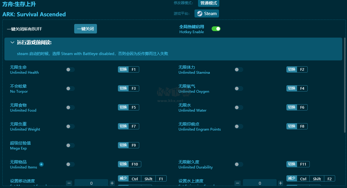 设置:Ctrl+F5 增加游泳速度 Ctrl+Shift+F5 减少游泳速度