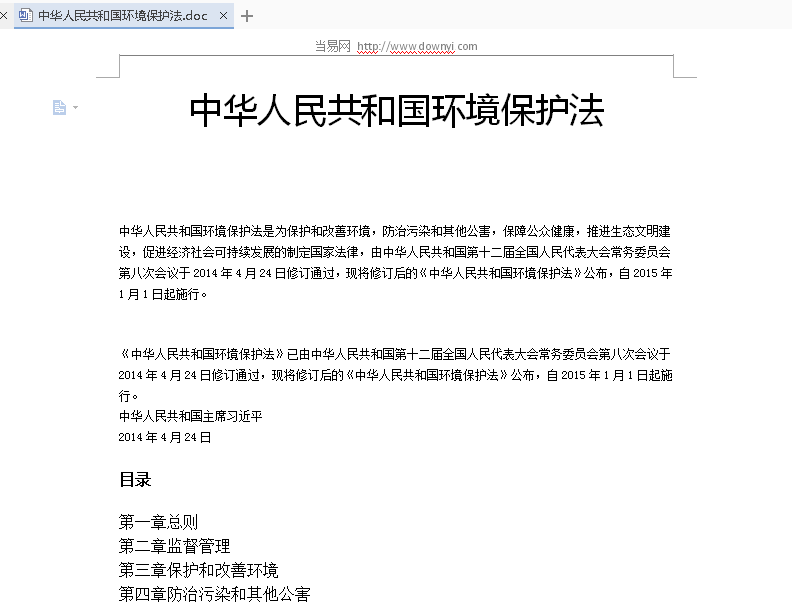 《中华人民共和国环境保护法》已由中华人民共和国第十二届全国人民代表大会常务委员会第八次会议于2014年4月24日修订通过,现将修订后的《中华人民共和国环境保护法》公布,自2015年1月1日起施行。