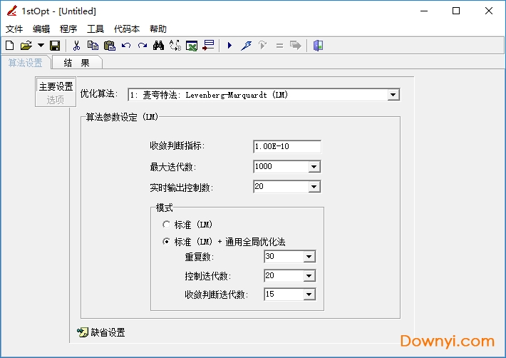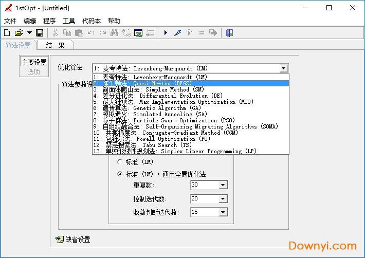1、下载软件,点击1stopt15pro.exe启动,进入界面,显示优化算法 方式,可以选择算法参数设定,支持收敛判断指标