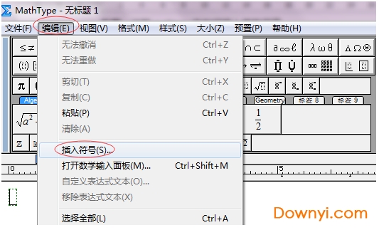 步骤一:点击mathtype软件菜单中的编辑-插入符号。