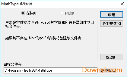 2、这里是软件的安装地址c:programfiles (x86)mathtype,点击确定