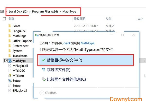 5.安装完成之后,把修改补丁mathtype.exe复制到安装目录并替换安装目录默认在:"c:program files (x86)mathtype