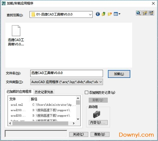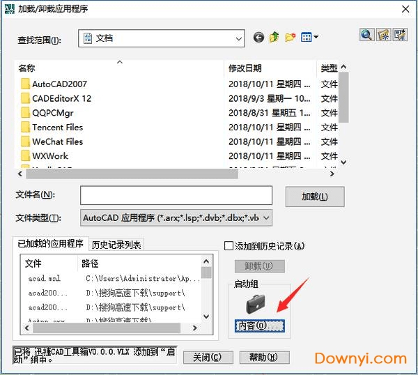 如果需要插件每次都随着cad自动加载,而不是每次都手动加载,可以将插件同时添加到启动组,方法如下:
