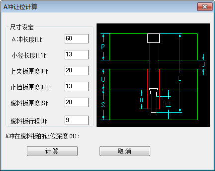 冲裁力计算、“压力中心”、“毛重净重”、“弹簧数量计算”、“弹簧压缩量计算”、“两用销让位计算”、“a冲让位计算”等,为用户省去大量的人工计算工作。
