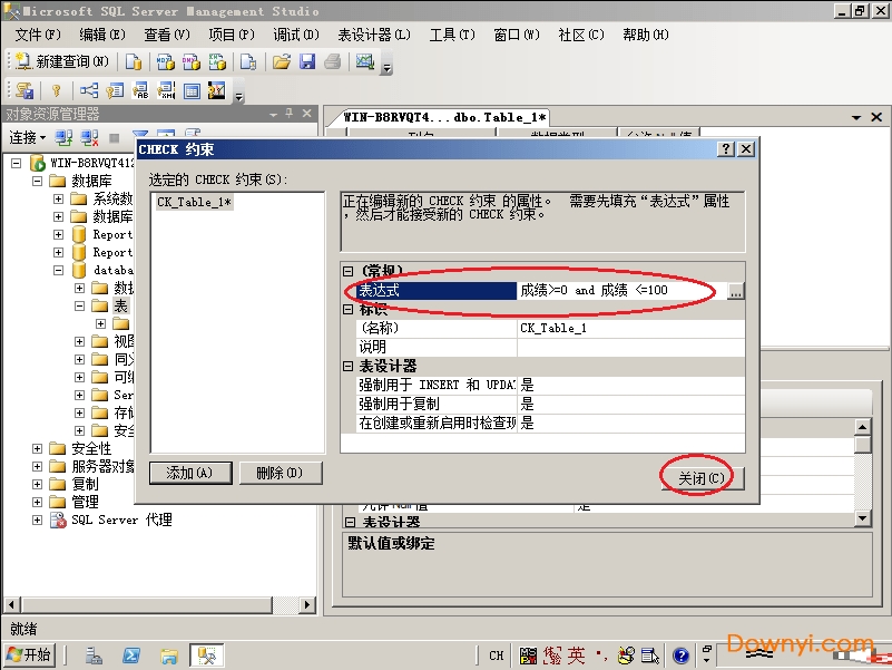 9、这里我限制的是成绩,填写表达式,关闭即可。其他的约束类似。
