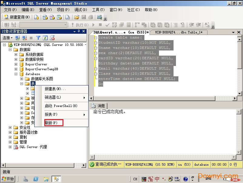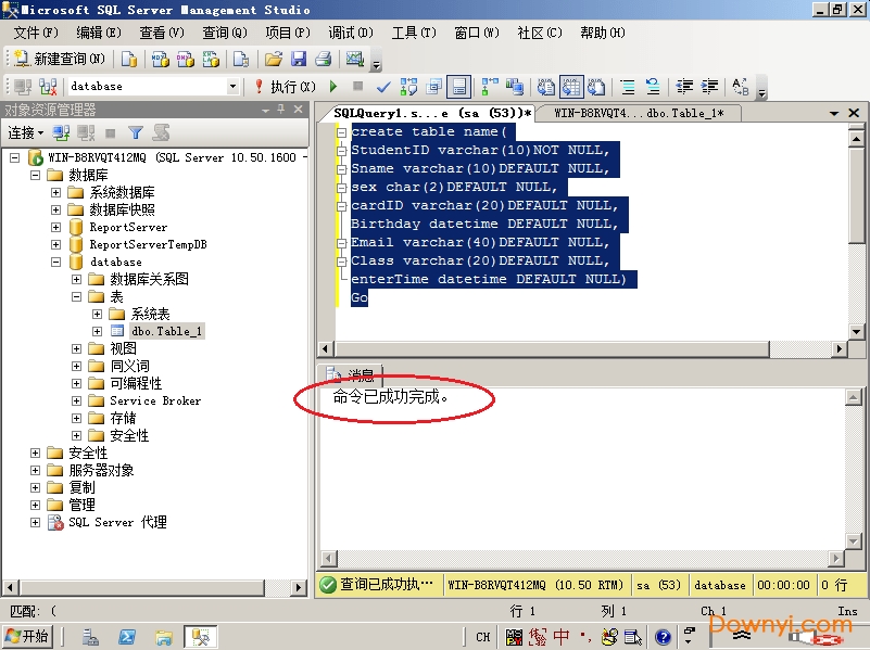 t-sql语句建表