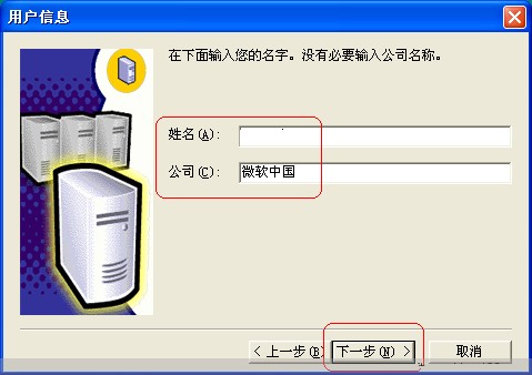 8、输入“姓名”和“公司”,也可以使用默认或不输入,然后点击下一步: