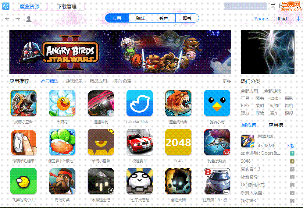 大魔盒助手拥有海量正版免费苹果应用和游戏资源可供下载,比itunes更快的下载速度;非常方便的苹果设备本地资源音乐/铃声/照片/书籍/文件管理查看;以及备份,pxl转ipa,铃声转换等实用功能。