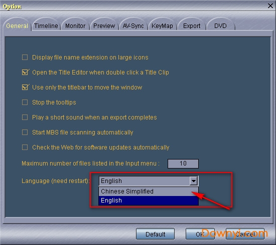 2.按f10弹出option选项,选择language语言为chinese simplified,点击ok将软件设置为中文
