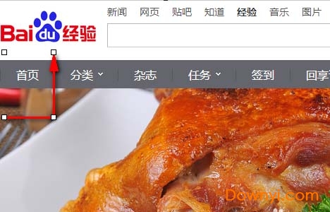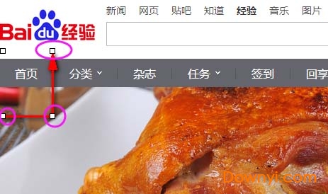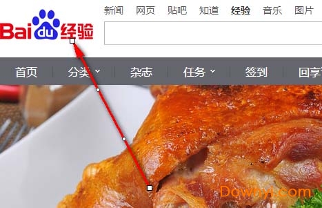 3、同样,在直角箭头上也有白色小方点。同样,可以用鼠标点住这些点,以调好箭头。确定好箭头后,鼠标在图片外围位置点下,以完成上面的操作,白色小方点会消失。