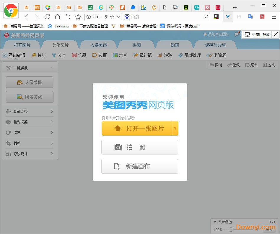 美图秀秀网页版是通过将浏览器中添加美图秀秀拓展程序而得来的,虽然大家可以直接在百度上搜索使用网页版的,但是小编觉得有点麻烦,现在安装它之后,想用的话直接点击图标即可,需要的话就来体验吧。