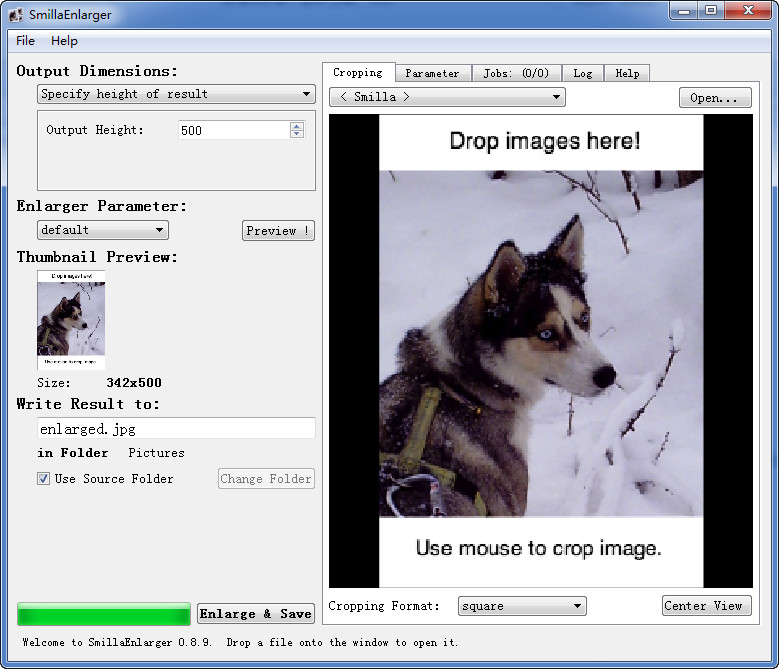 imageenlargerj是一个图片放大软件,可以按百分比来放大图片,也可以直接指定放大后图片的大小来放大,通过软件的调节功能可以使放大后的图片尖锐化,模糊,或有锯齿。
