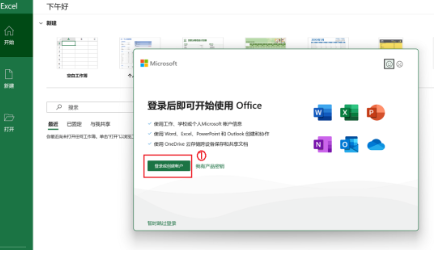 1、首先打开其office的组件,然后按照提示内容,进行登录操作。