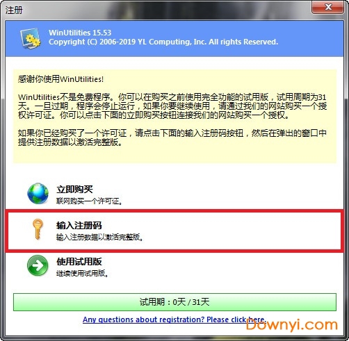 3、打开软件,选择“输入注册码”;