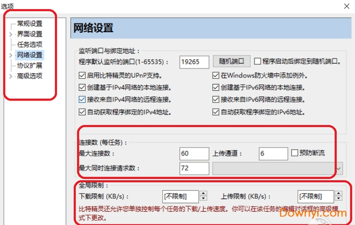 8、当没有下载任务时全速上传(可配置),尽量维护bt网络的稳定性。