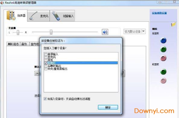 4、最好讲最重要的输入输出插孔设置,该项设置在设置面板的右边,按照处理芯片的不同,插孔数量也略有不同,但是设置都是一样的。